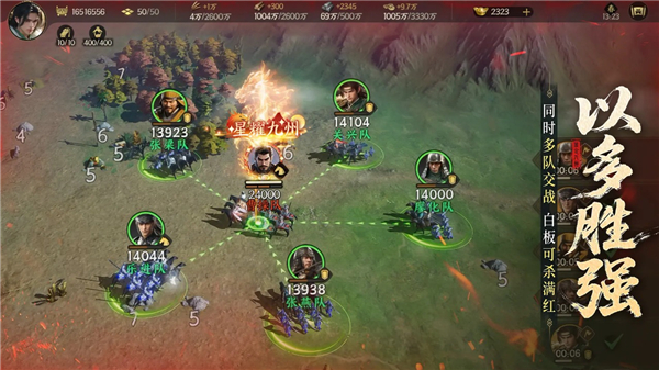 三国战役谋略至上!游戏支持多支队伍同时交战,并可实时操控每一支队伍行军路线、集火目标,实现类moba的战中微操,打破数值疆界,部队武将即使是白板,只要人多够活跃,也可强杀满红大佬!