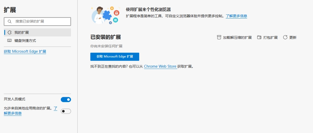 2、找到【插件扩展管理页面】-【开发者模式】打开。