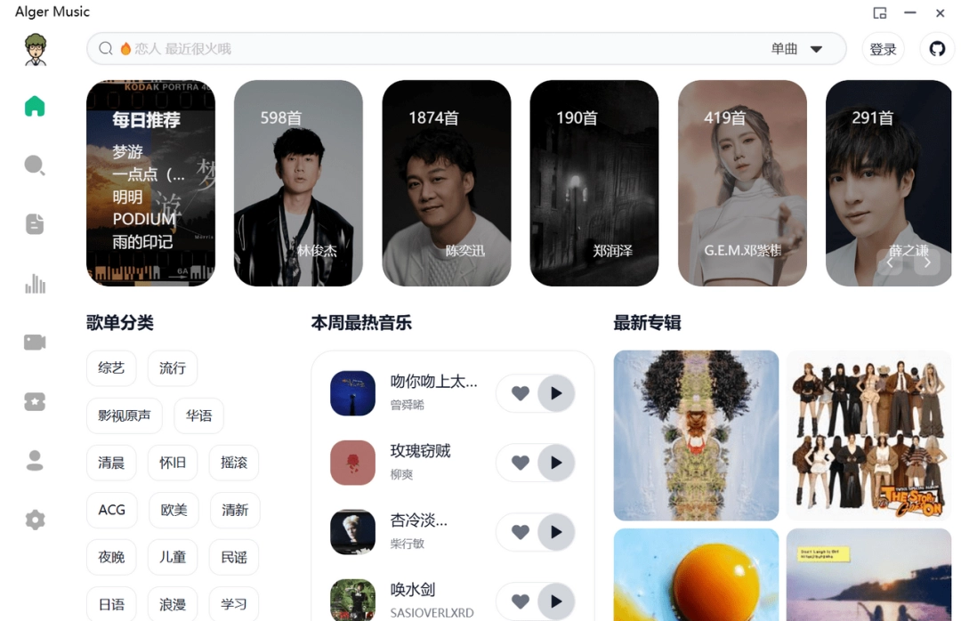 AlgerMusicPlayer是一款专为乐迷打造的音乐播放器软件,软件界面简洁流畅,操作简单易用,提供高清 MV 播放、智能音乐推荐,搭配桌面歌词显示,支持登录网易云音乐账号,轻松同步歌单、收藏与播放记录,支持mp3、flac、aac等多种常见音频格式,满足用户多样化的音乐播放使用需求,有喜欢的小伙伴千万不要错过了!