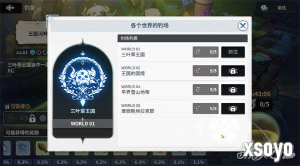 5、在一处钓场用完「钓饵」后,「钓饵」会自动恢复数量,这时候你们可以在「各个世界的钓场」弹窗中选择想要继续去钓鱼的场所!