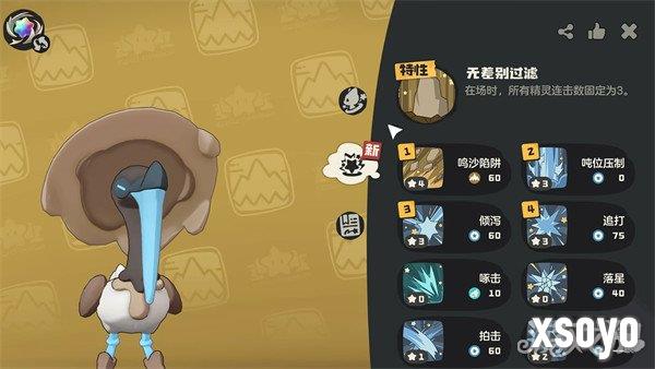 吸泥鸥通常不会被作为战斗宠使用,而是在它进化成为泥吼牙后,才会被人们编入精灵队伍作为克制连击精灵的奇兵。这是因为泥吼牙有着无差别过滤的特性,能强制将精灵的连击数固定为三,对需要打高连击来完成伤害输出的精灵有着非常不错的克制效果。而且它自身的物防也足够优秀,配合上鸣沙陷阱的攻击也能在战斗时对敌方造成较高的伤害,所以在合适的环境下能有着十分优秀的表现。此外,若各位只是想开图鉴,并不打算将泥吼牙放入阵中让它战斗,那么在升到40级完成觉醒后就可以不再投入任何资源养它。