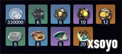 贝币×330000、低频啸叫声核×6、中频啸叫声核×6、高频啸叫声核×10、全频啸叫声核×12、惰性金属液滴×6、活性金属液滴×8、极化金属液滴×6、异构金属液滴×20