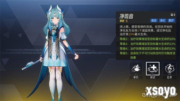 水生绫回合开始时,为友方全体每人驱散一个负面效果,净化成功后治疗其15%最大生命