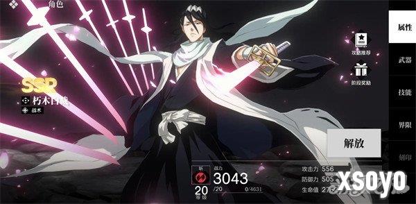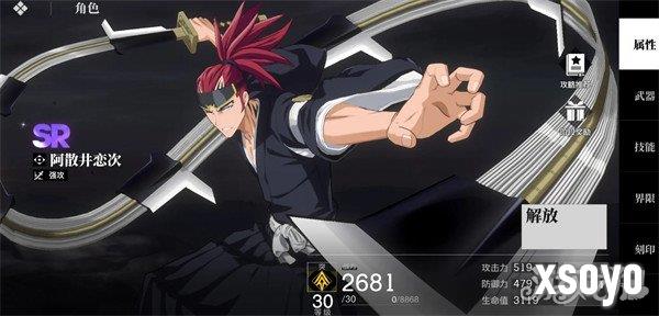 在完成灵压的积累后可长按普攻打出分支攻击,并能在命中后再追加一道大范围高伤害的横扫。其大招共有两段,释放时能直接进入卍解状态,同时获得战技能使用两次的效果,自身的能力也会得到提升,持续一段时间后或主动再按必杀能立刻释放第二段大招攻击。