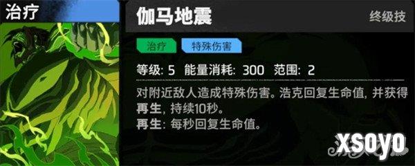 伽玛地震是浩克的核心生存技能,具备回血与再生双重效果。在技能触发后,浩克不仅能恢复一定比例生命值,还拥有类似“假死复活”的再生机制。当生命值降至临界点时,再生效果可让他重新站起来继续作战。这一机制极大提升了他在高难度关卡或BOSS战中的容错率,也让队伍整体续航能力得到增强。