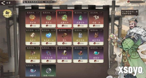 1、在群雄逐鹿的商店中,明公可使用一定数量的代币兑换1个龙骧之印,商店将会每月更新一次。