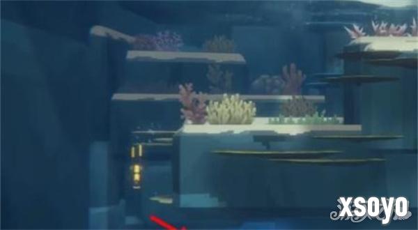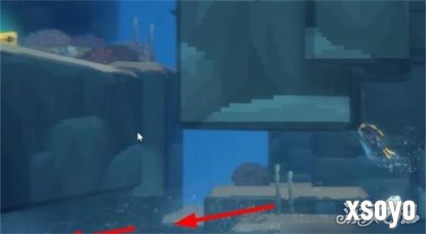 1、完成支线任务“调查可疑珊瑚”,从章鱼洞穴出来后,按照箭头方向移动。