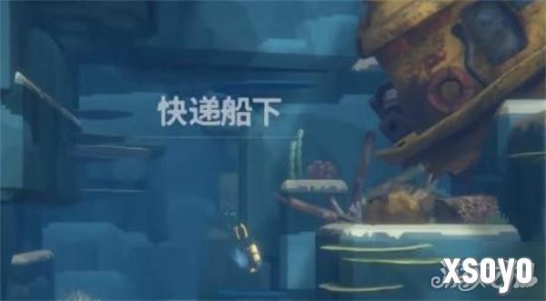 5、进入沉船发光的位置,选择前往新区域,来到快递船下。