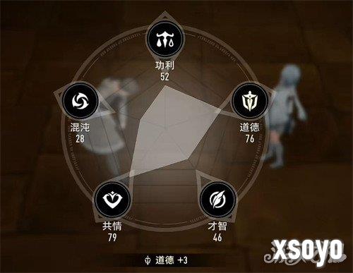一开始和NPC对话时,有一个选项,会让你选择第一个:“虽然有种不好的预感,但只要经历够丰富,体验一下也无妨。”选择这个后,你会获得功利属性的提升。