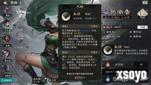 二阶段的孙尚香的名将特点是受到暴击伤害提升100%。由于以主动技能触发天赋打输出的英雄,其攻击频率并不高,且游戏中的技能暴击率最高只能叠加到20%,所以这里依旧是选择追击英雄更为合适。
