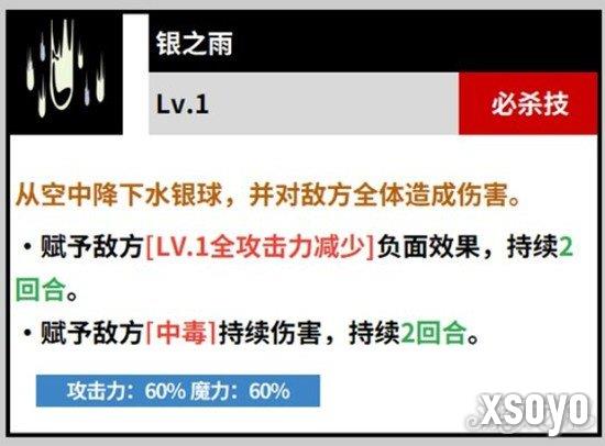 诺杰尔的终极技能银之雨具备全屏覆盖能力,释放时会从空中降下大量水银球,对所有敌人造成范围伤害。该技能不仅伤害范围广,还能在命中后降低全体敌人的攻击力,并附加中毒效果。这一机制使得银之雨在面对高输出阵容时尤为有效,既能打断敌方节奏,又能为己方争取输出窗口。在黑色四叶草魔法帝之道的高难副本或竞技场中,银之雨往往是扭转战局的关键技能。