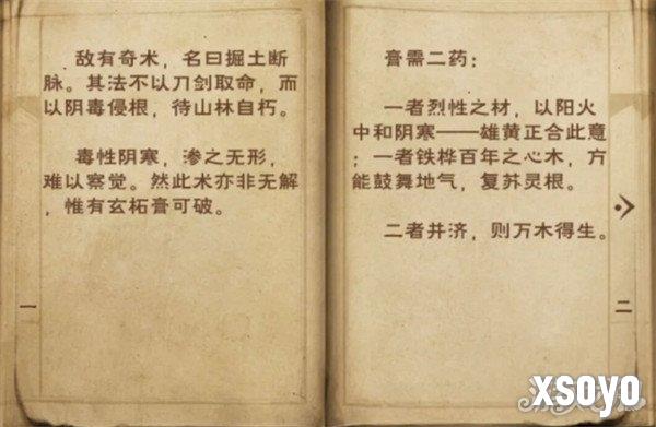 10.激活阳性内功,去(18,8)点击松桦树选择「检查」→「治疗」→「玄柘膏」,再选择「检查」→「阅读木刻」。
