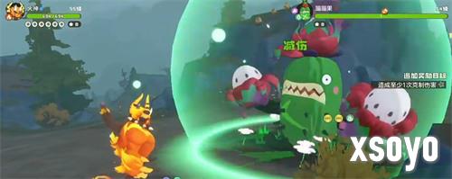 成功击破护盾后,系统将提供三项增益选择。若队伍缺乏物攻加成,推荐优先选取生命值提升效果,以增强第二阶段的生存能力。随后进入精灵对战模式,面对草属性为主的蹦蹦果,火系精灵“火神”是最佳应对人选,凭借属性克制可大幅提高输出效率。