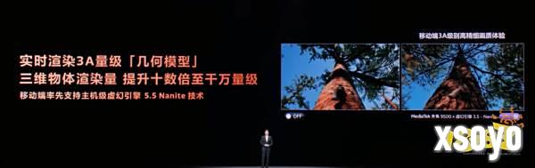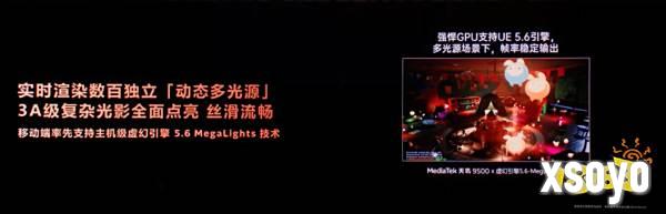 此外,天玑9500 还成为移动端首款支持虚幻引擎5.5 Nanite技术和5.6 MegaLights技术的旗舰芯片。虚幻引擎5.5 Nanite技术让其几何模型渲染能力暴涨十数倍,可实时渲染千万量级的几何模型。而MegaLights技术则将手游光源渲染数量从数个提升至数百个。这两项技术将大幅提升游戏模型、光影渲染效率,彻底解放手游画质的新上限。
