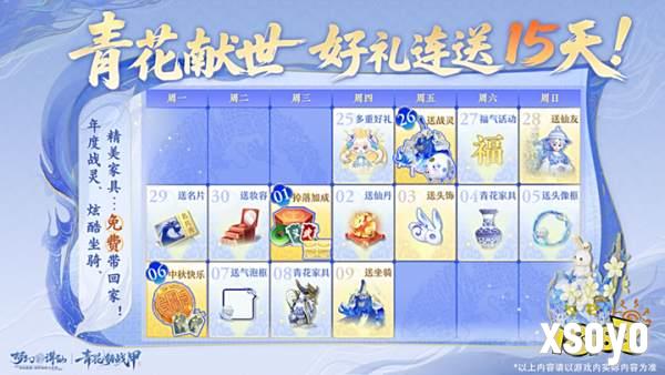 长假躺平也能富,狂送好礼15天!年度战灵、绝品青花瓷联动仙友【天青】、炫酷坐骑、青花瓷限定家具等海量好礼,让你每天都有新惊喜!