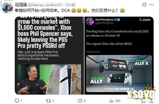 微软游戏CEO菲尔·斯宾塞因早年“不会以1000美元游戏机扩大市场”言论与现Xbox掌机ROG Ally X的1000美元定价形成强烈反差,遭遇舆论“回旋镖”效应 。该掌机由微软与华硕联合开发,搭载高性能硬件并整合Xbox生态,但高价策略引发玩家群体广泛争议,被视为对用户信任的背离 。