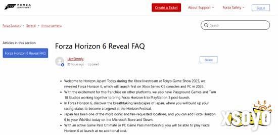 在2025年东京电玩展Xbox直播活动中,微软与Playground Games正式公布《极限竞速:地平线6》,确认游戏以日本为背景,深度融合富士山、东京霓虹街景及乡村四季风貌,并引入动态季节系统与K-Car等本土汽车文化元素。本作定于2026年率先登陆Xbox Series X|S与PC平台,首发加入Xbox Game Pass,PS5版本由Turn 10工作室协作开发,将于首发后跟进推出,具体细节将于2026年初公开 。