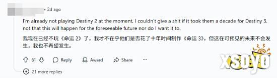在Reddit和X(Twitter)上,关于是否应该推出《命运3》的讨论愈演愈烈。一位玩家直言:“我已经不再信任Bungie了。《命运2》我也弃坑了,不知道他们还能做出什么让我回到这个系列。”