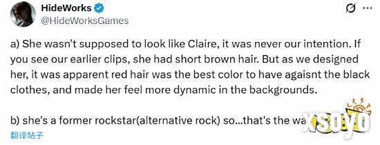 HideWorks表示,他们并未刻意追求与克莱尔的相似性。“早期的莉拉有着棕色短发,但在角色设计过程中,我们意识到红发与黑衣搭配最为出彩,能使她在各类场景中更显鲜活灵动。况且,她曾是另类摇滚歌手,这身装扮正是摇滚圈的常态。”