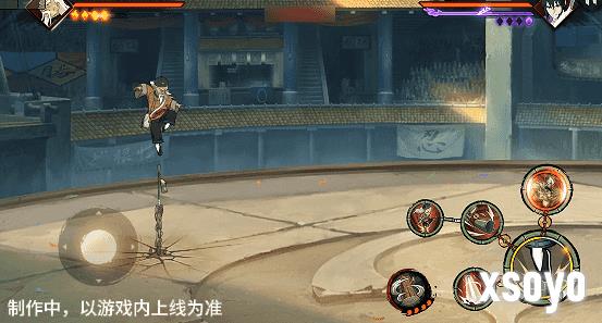 跟随状态下释放二技能,侠隐大野木将竹棍插入地面,跃至竹棍上方将其挤压变形导致弹飞,随后可通过摇杆控制竹棍落点,地面红圈涨满后竹棍自动砸下,也可点击普攻提前砸下,同时切换为离手状态。