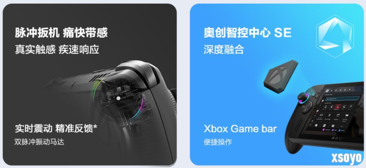 此次全新加入的专属Xbox按键,深度融合控制中心,无论游戏中还是游戏外,均可疾速呼出,帮助玩家快速调节常规设置和各项游戏参数。全新升级的奥创智控中心SE,集成按键映射、游戏设置档、性能模式调节、BIOS及驱动更新等丰富设置,一站式满足玩家的自定义与管理需求。奥创中心SE配合Xbox全屏体验,将会给玩家带来颠覆性的全新畅快掌机体验。