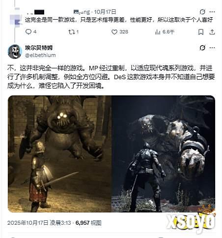 发帖人@elbethium称:《恶魔之魂重制版》在各个方面都比原版更胜一筹。游戏画面、手感和玩法(比如全方位闪避)都更出色。说他们“糟蹋了”,并不能体现出你是一位睿智的老手,反而会让你看起来像个固执的孩子。