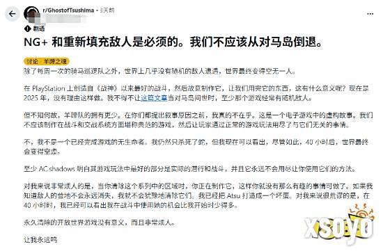 2025年10月下旬,《羊蹄山之魂》通关后开放世界敌人消失问题引发玩家社区激烈争论,支持方要求新增敌人刷新与New Game+模式以延续战斗体验,反方则认为单机游戏叙事完整性高于无限玩法,凸显Sucker Punch在设计哲学上面临的沉浸感与可重玩性平衡挑战。