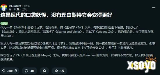 帖主表示:作为一名《宝可梦剑盾》的初代玩家。在我看来,自《宝可梦XY》以来,每款游戏都在走下坡路。我试玩了《剑盾》,感觉它毫无亮点。我跳过了《朱紫》,尝试了《宝可梦传说:Z-A》,我的结论是,宝可梦现在就这样了。