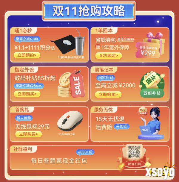 双十一华硕商城大波福利派发中,活动期间下单即享优惠福利,数码补贴补贴85折起,购机赠3年延保+3次远程服务。点击链接,了解更多福利详情!