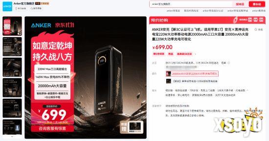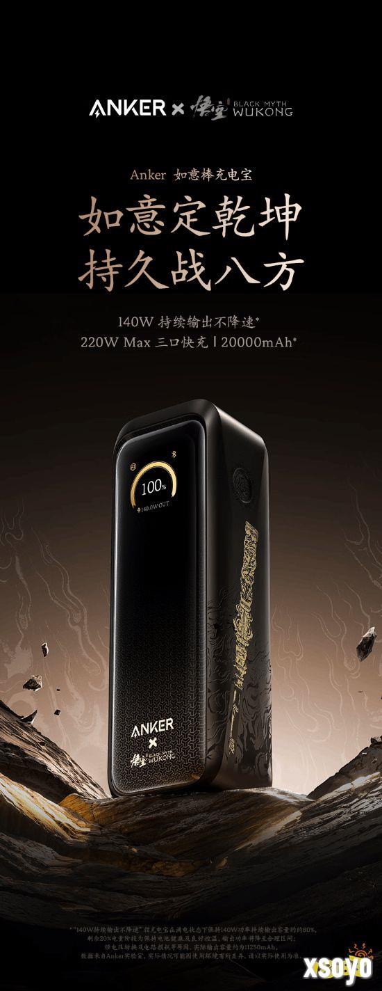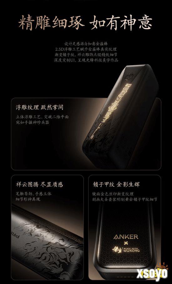 Anker安克与《黑神话:悟空》联名充电宝于2025年11月1日正式开售,售价699元,京东旗舰店首发;产品融合国风美学与220W快充技术,配备20000mAh/72Wh航空级锂聚合物电池,支持PD3.1/UFCS/PPS多协议快充,30分钟可为MacBook Pro充入50%电量,并通过3C认证允许登机,重520g兼顾大容量与便携性。