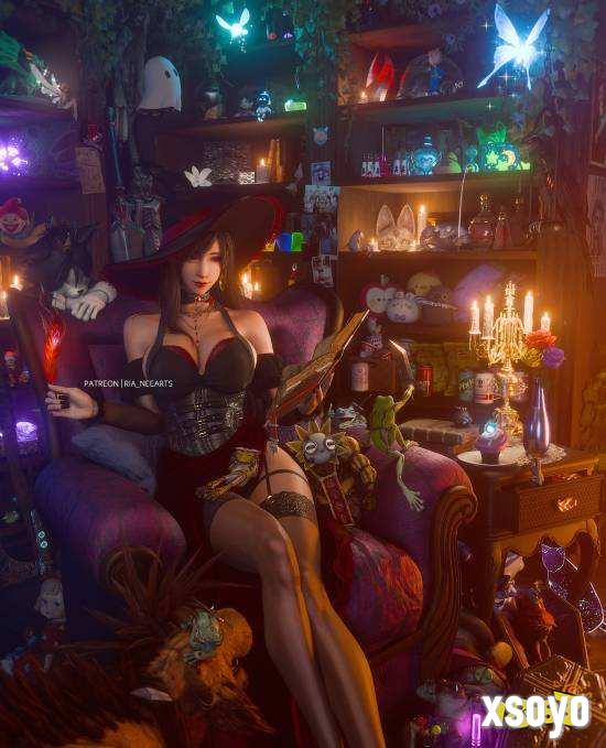 博主@Ria_neearts于2025年万圣节期间发布《最终幻想7》蒂法与爱丽丝主题3D美图,通过精细建模展现角色性感身材;同期创作的“高跟鞋勾黑丝”系列结合流行视觉元素,凸显腿部线条与材质光影效果,相关作品在社交媒体引发二次创作热潮 。