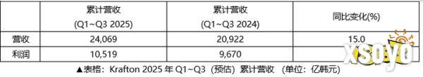 KRAFTON公司今日(11月4日))在投资者关系简报会上公布了2025年第三季度财报。