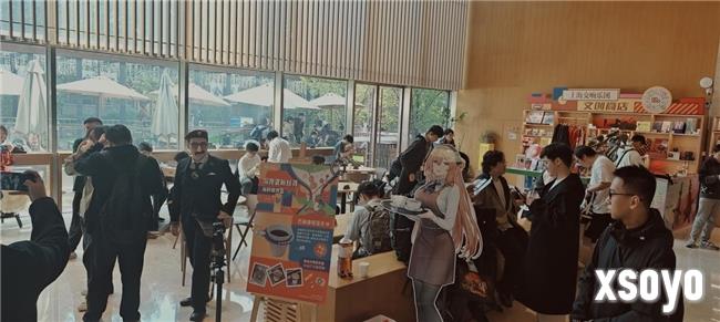 旁边,由温婉大方的春田小姐充当主理人的“方糖咖啡馆”也是人声鼎沸,虽说是购买饮品,小憩交流的休息区,但来来往往的玩家依旧让这里成了整个大厅最蓬勃、最热闹的地方。
