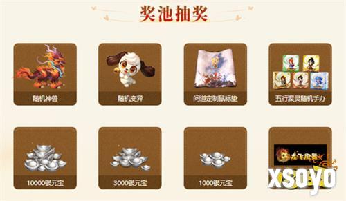 参与试道大会并与其他玩家战斗时至少胜利一场或参与了帮战战斗的玩家,可前往“逐鹿争锋”页面奖池抽奖,奖池包含随机神兽、变异、银元宝、问道周边、限时30天“龙飞凤舞”称谓奖励。