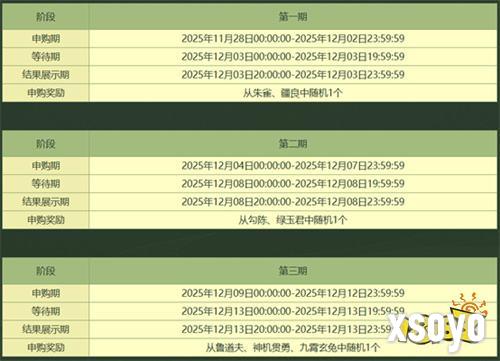 灵宠献瑞活动一共三期,第一期至第三期顺序开启。每期活动分为三个阶段,按顺序依次为申购期、等待期、结果展示期。活动申购有效时间内,玩家可以通过福利中心--【灵宠献瑞】界面查看本期奖励,同时点击【申购】按钮申购本期灵宠。申购完成后,将立即获得申购时所支付金元宝等值的银元宝,并额外获赠20%的银元宝。等待期结束后当天的20:00,在所有成功参与该活动的玩家当中,随机抽取其中一位玩家获得当期奖励。