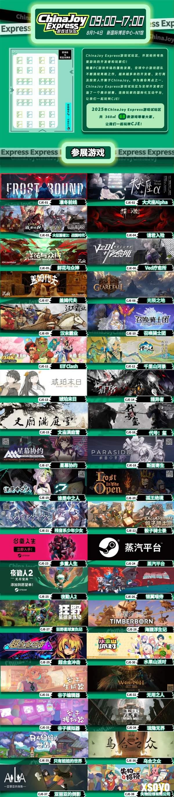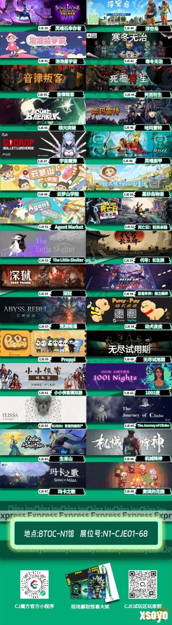 下附2025 ChinaJoy Express游戏试玩区参展的游戏作品名单,玩家可以保存图片筛选自己感兴趣的游戏。