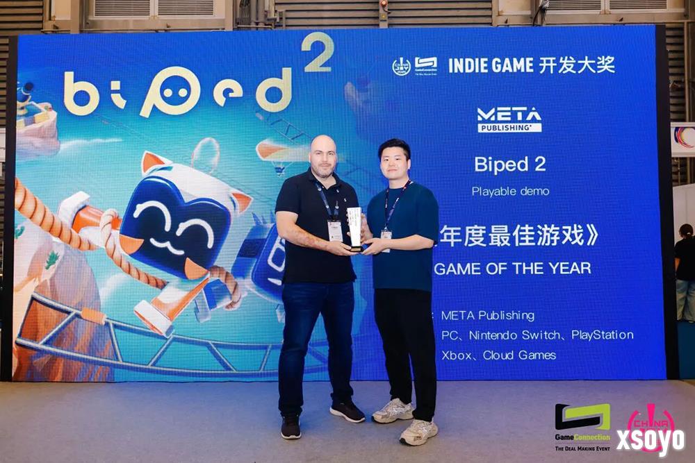 《Biped 2》获得2025ChinaJoy × Game Connection年度最佳游戏奖 获奖者与颁奖嘉宾合影