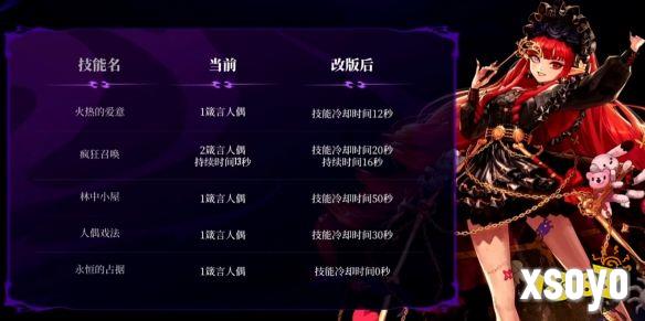 针对国服的环境,奶萝还有专属改动,删除人偶相关机制,消耗人偶的技能冷却时间调整,删除二觉延长太阳时间机制,延长部分的持续时间加入太阳持续时间内,进一步提升奶萝的职业体验。