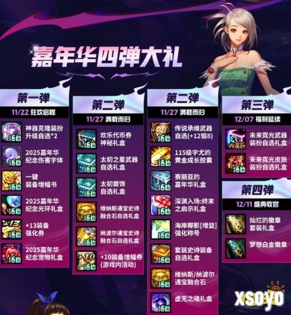 公布完一波又一波硬核更新,福利环节直接把氛围拉满!除了开头尹明镇亲自送出的自选太初武器+太初首饰,更有神器克隆装扮升级券、+13装备强化券、全身灿烂徽章、梦想白金徽章,还有玩家最刚需的欢乐代币券直接安排!