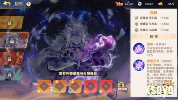 橙色新祖巫强良已经加入到游戏中,守护使集齐相应巫器即可激活。 满级强良特性:每轮开始前,为敌方全体目标附加[雷殛],无法被转移,持续1回合;[雷殛]目标每轮首次攻击前,己方攻击最高的神将对其造成一定百分比攻击的间接伤害;[雷殛]:降低一定百分比间接伤害减免。