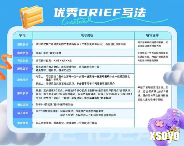 体现核心卖点、人群:体现游戏的核心卖点与目标人群,让达人精准把握推广核心方向