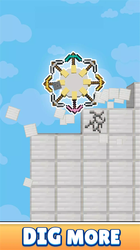 将镐头组合成轮子,升级你的挖掘能力。高效合并,解锁强力工具,加快挖掘速度。