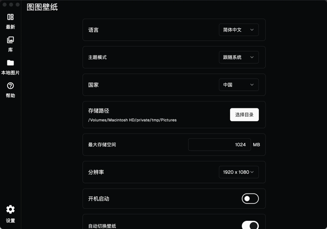 3、在设置界面可以更改分辨率,还能开启自动切换壁纸功能。