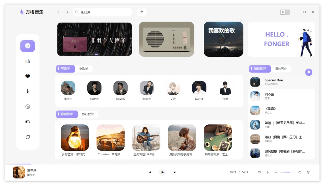 - 新增 现在点击播放栏歌曲或歌手可以直达搜索