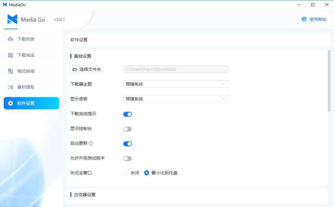 MediaGo是一款非常实用的开源视频下载工具,软件功能强大,操作简单易用,支持流媒体下载、m3u8视频下载及B站视频下载,可以选择多个视频资源然后同时下载,通过批量下载的方式大大提高了使用效率,可以进行个性化设置,开启广告过滤,或切换主题颜色,满足用户不同的使用需求,感兴趣的小伙伴赶快下载使用吧!