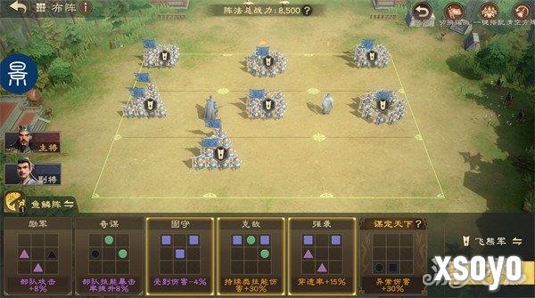 阵型推荐选择固守、克敌、强袭;如果有激活谋定天下羁绊,就选择谋定天下、克敌、固守阵型。