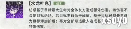 战术技“水龙吐息”则兼具功能性与进攻性。技能会基于目标最大生命对友方全体造成额外伤害,虽然这种伤害不会导致队友退场,但对血量的管理提出了更高要求。