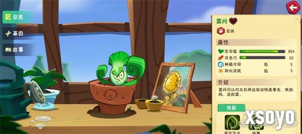 这是一颗近战植物,生命值854,20的基础攻击。普通攻击时,向左右2格内最近的1个敌人挥拳攻击,对其造成自身攻击力100%的伤害。技能“永春”,可同时对自身3X3范围内所有敌方单位攻击7次,每次造成自身攻击力800%的伤害。是个近战能力很强,输出较高的群攻植物。