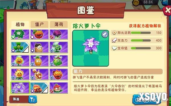 熔火萝卜伞由萝卜伞和岩浆玉露融合而来,其发生融合时,会对周边一格内的敌人造成一次爆炸伤害,且在转变后依旧拥有能弹飞天上敌人的能力,还能对被弹飞的敌人造成少许伤害。最关键的是,熔火罗卜伞在弹开物体时不再消费次数,只要融合好了就能无限次使用。