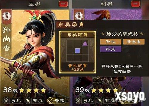 孙尚香的阵容搭配围绕穿透增益和普攻强化两大主题展开,通过与特定武将的组合,可构建出兼具爆发与持续作战能力的顶级弓兵队伍。根据实战测试和高排名玩家反馈,以下为当前版本最强势的孙尚香阵容。兄妹暴击弓:孙策+孙尚香阵容构成:主将:孙尚香,副将:孙策兵种:武射吏(概率击退+暴击提升)羁绊:东吴帝胄(20%普攻增伤)推荐阵法:车悬阵/风扬阵。阵容机制:孙策被动提供高额暴击率与暴击伤害加成,是队伍的核心输出引擎。孙尚香则通过穿透率降低战损,保障孙策兵力健康,使其持续输出高暴击伤害。武射吏兵种的击退效果可进一步减少近战威胁,与穿透体系完美契合。